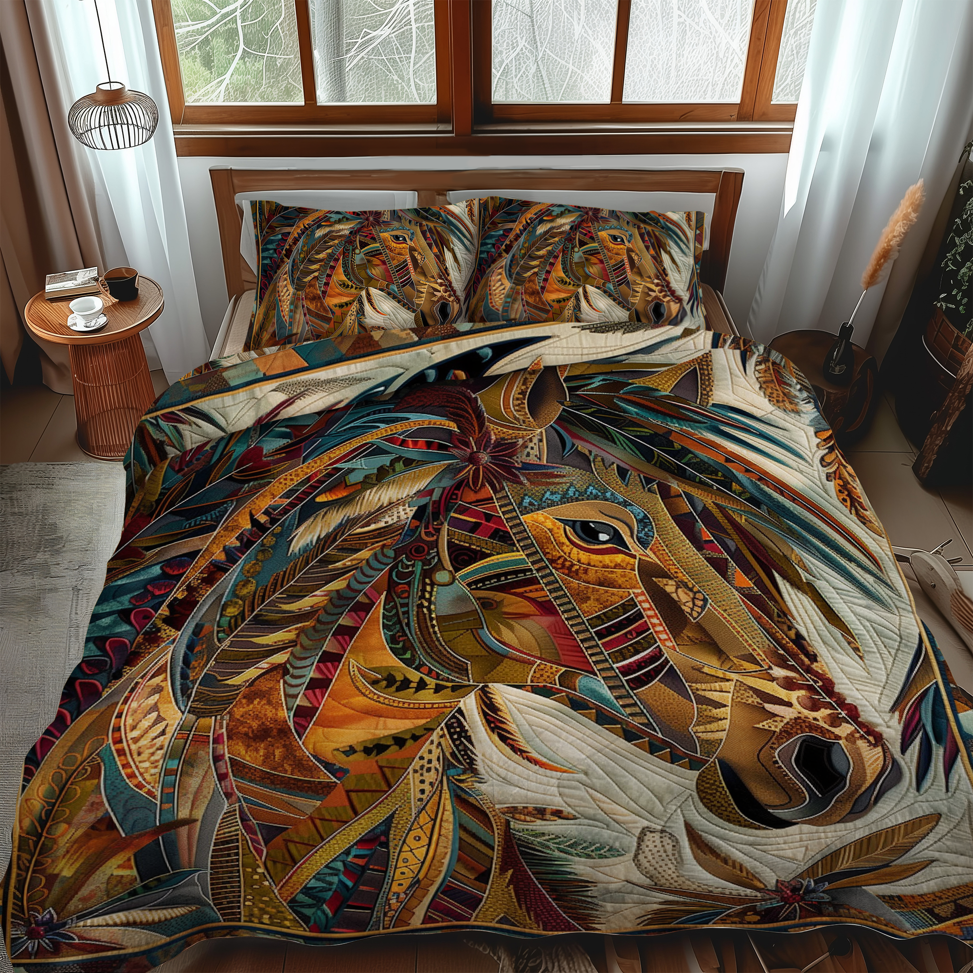Horse Native 3-Piece Quilted Bedding Set NCU0DK246