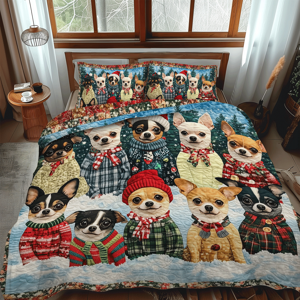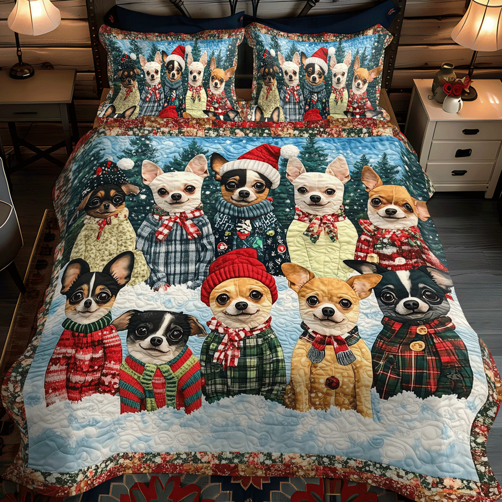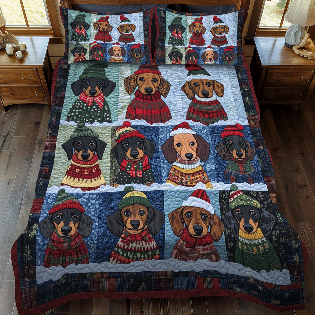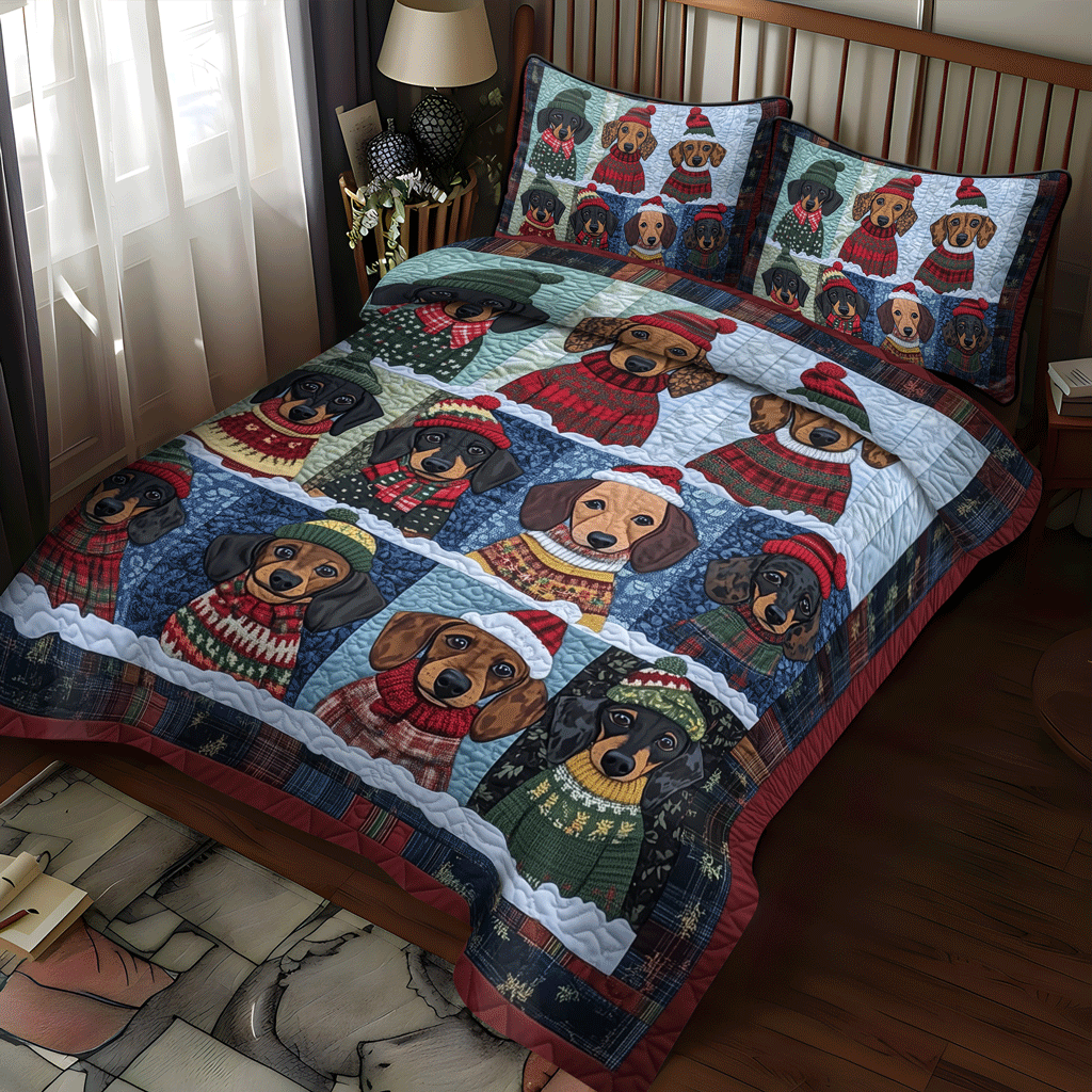 Jolly Doxie Paws 3-Piece Quilted Bedding Set NCU0TH1691