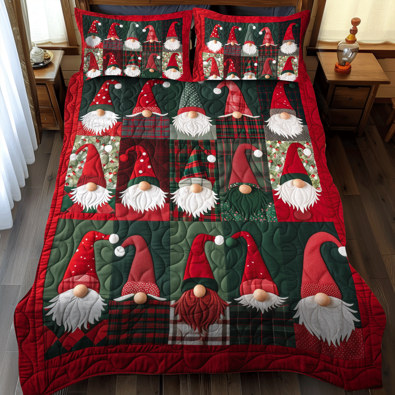 Jolly Gnomes 3-Piece Quilted Bedding Set NCU0NT031