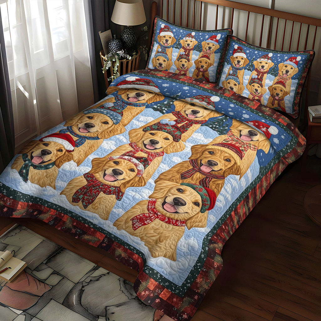 Jolly Golden Paws 3-Piece Quilted Bedding Set NCU0TH1627