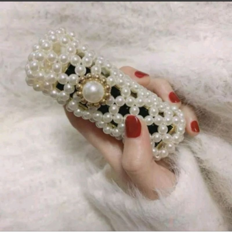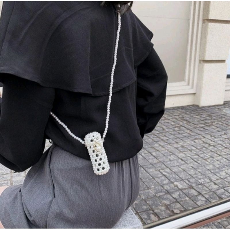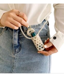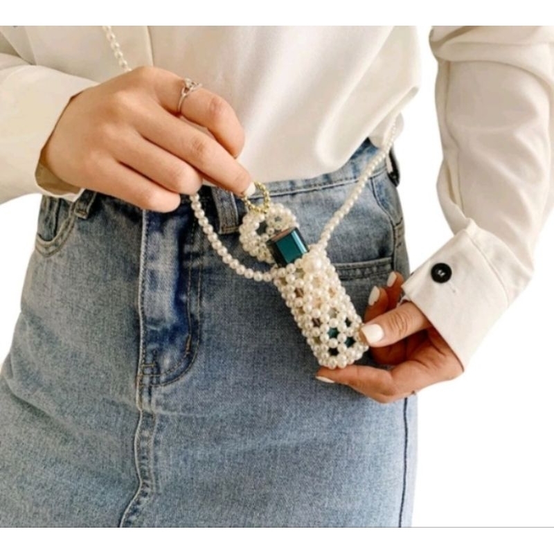 Handmade Pearl Beaded Lipstick Holder Necklace Elegant Crossbody Mini Bag