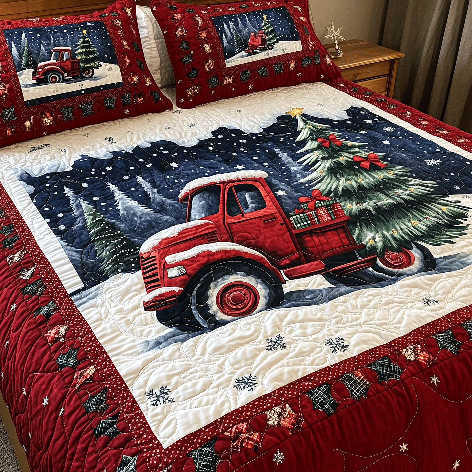 Joyful Holiday Pines 3-Piece Quilted Bedding Set NCU0PT2113