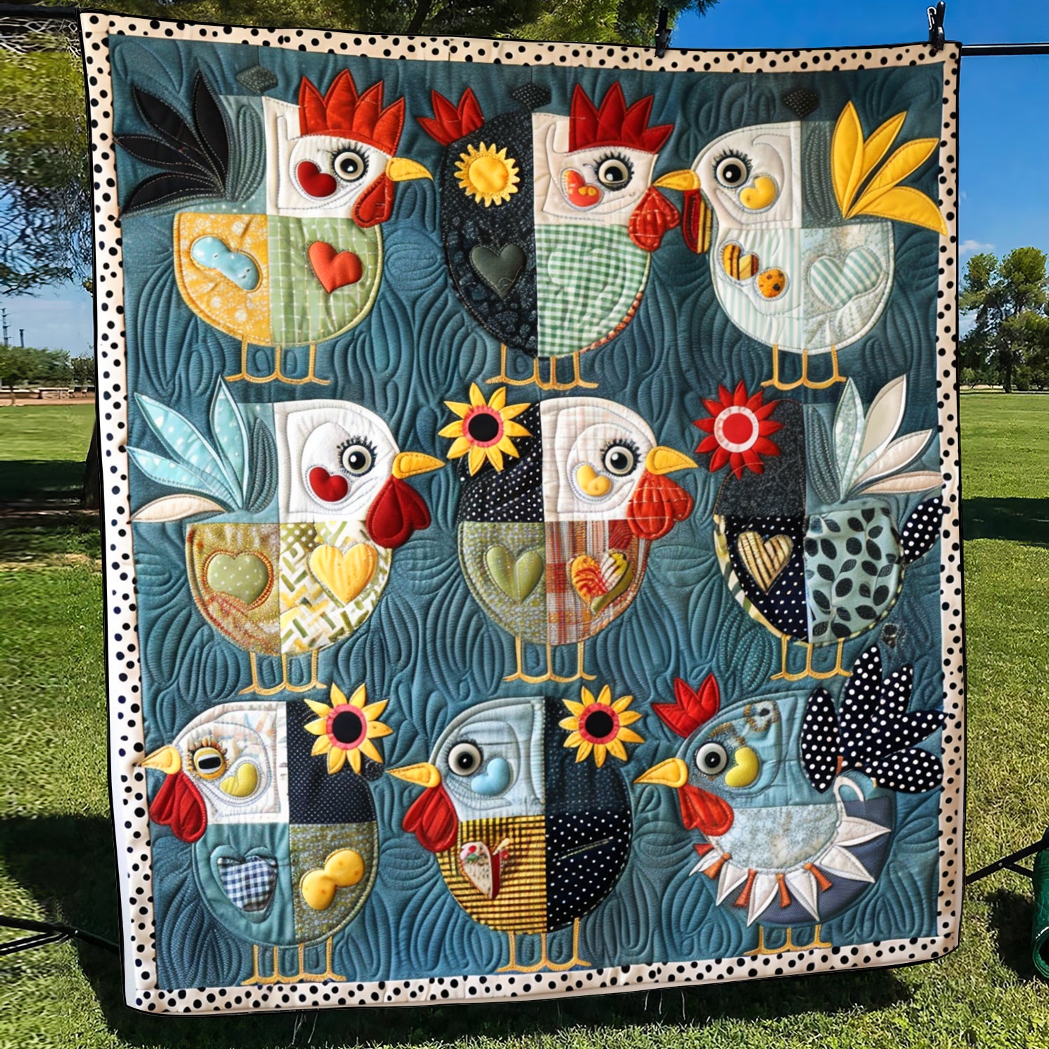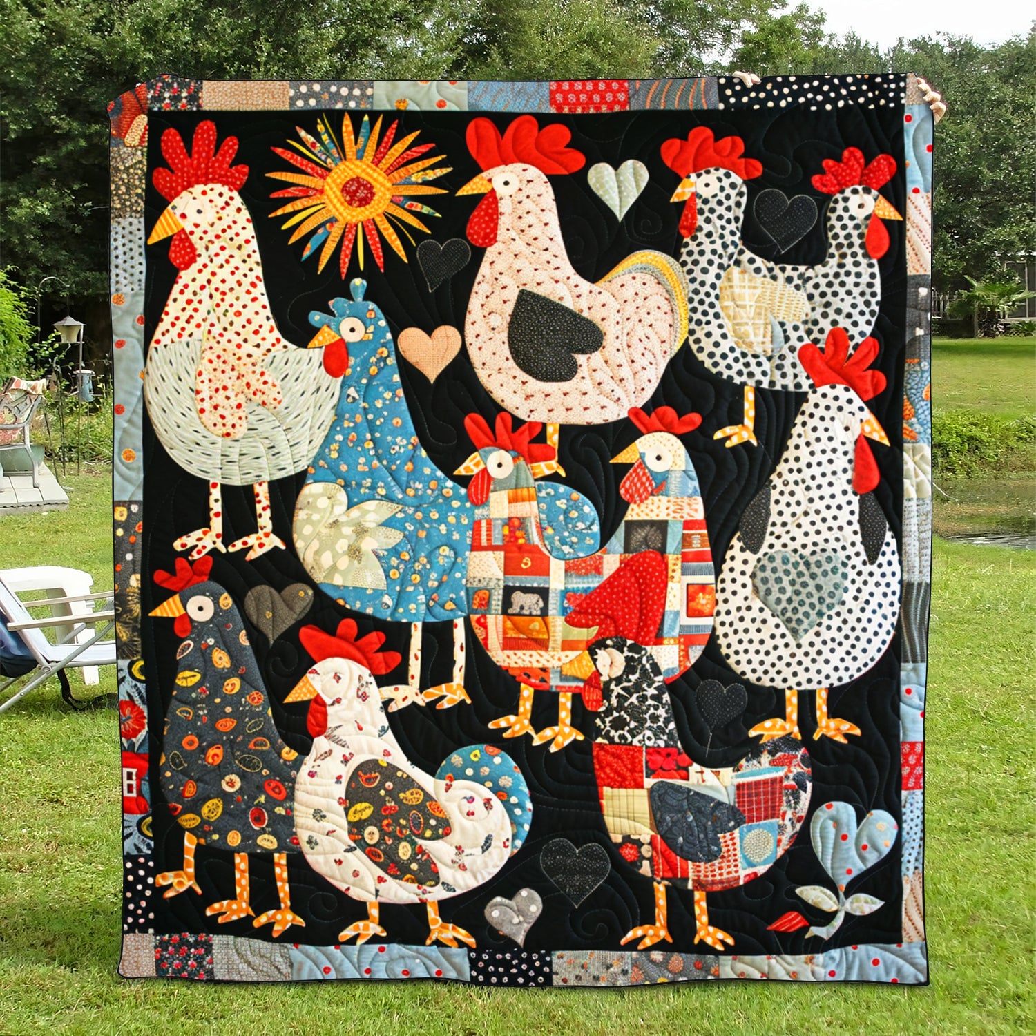 Patchwork Poultry Quilted Blanket NCU0TH870