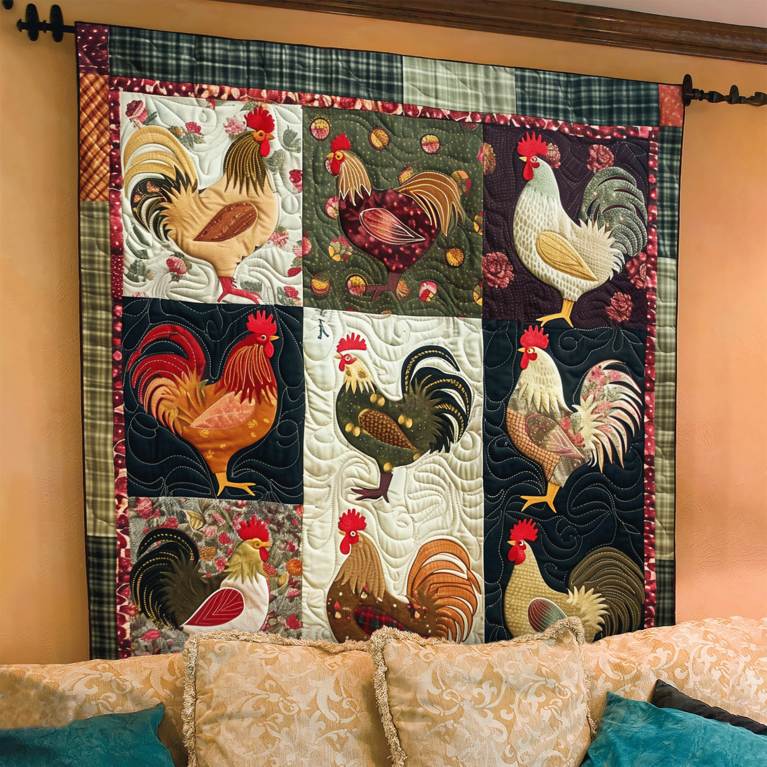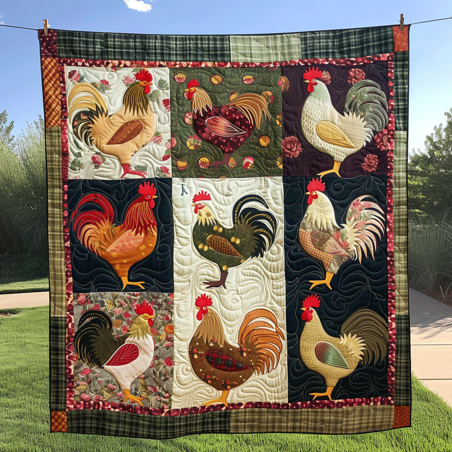 Plaid Poultry Patch Quilted Blanket NCU0TH955