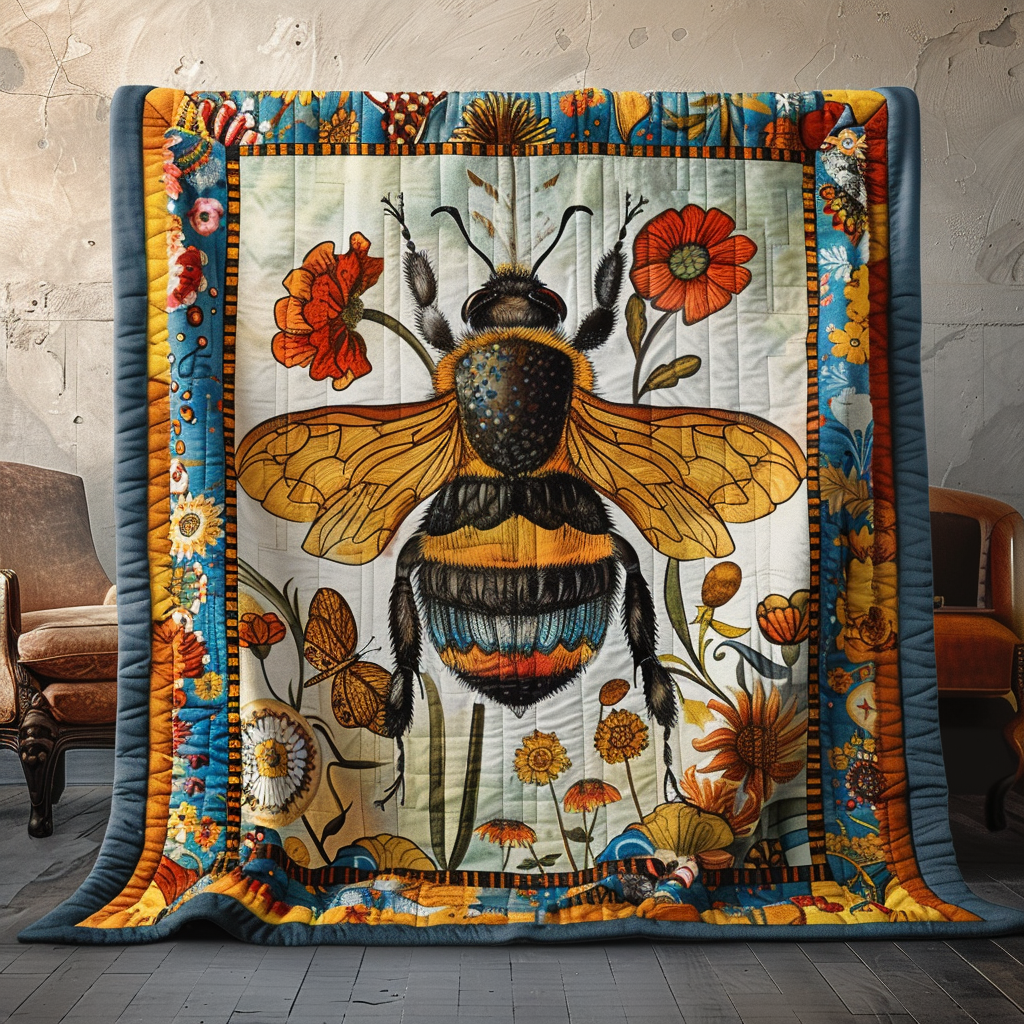 Vibrant Bumblebee Floral Quilted Blanket NCU0PD007