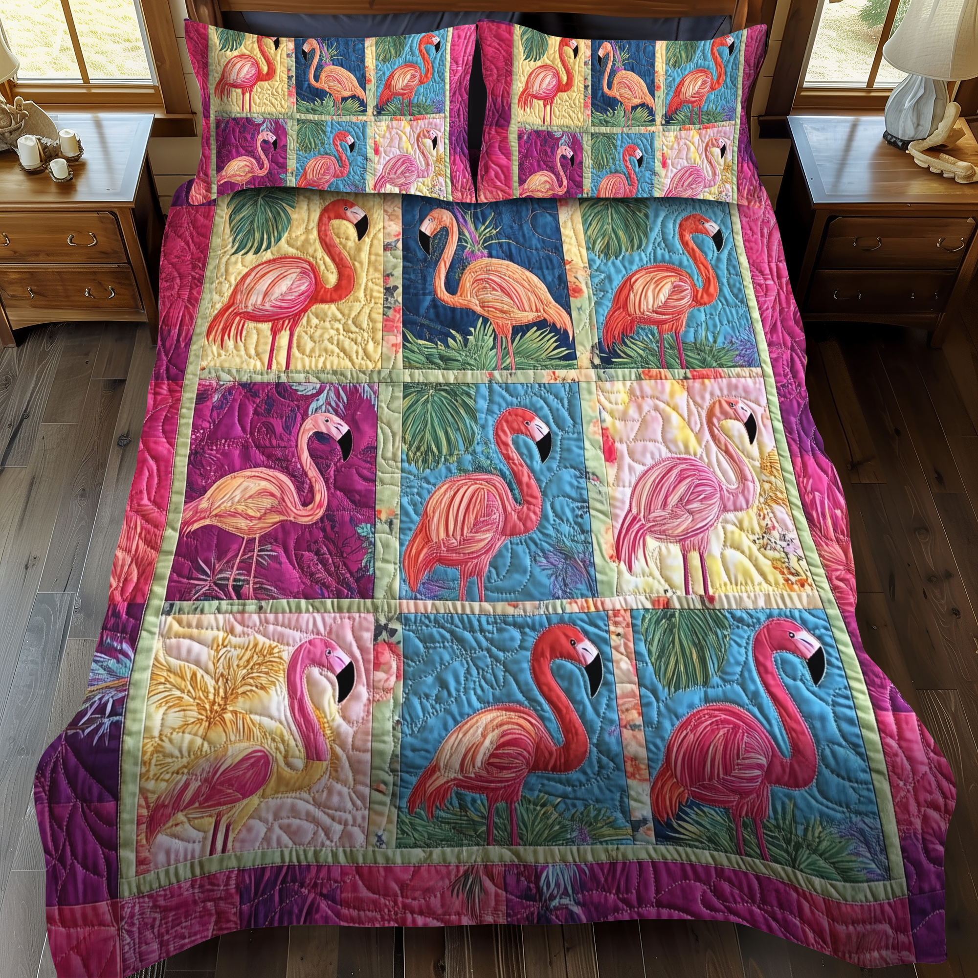 Cuddly Flamingo 3-Piece Quilted Bedding Set NCU0VL457
